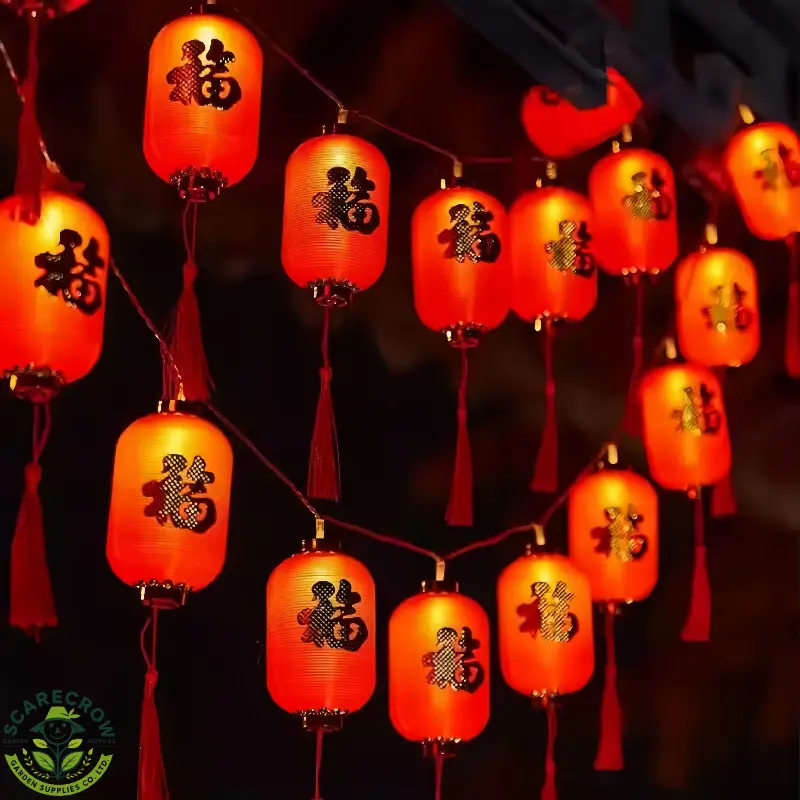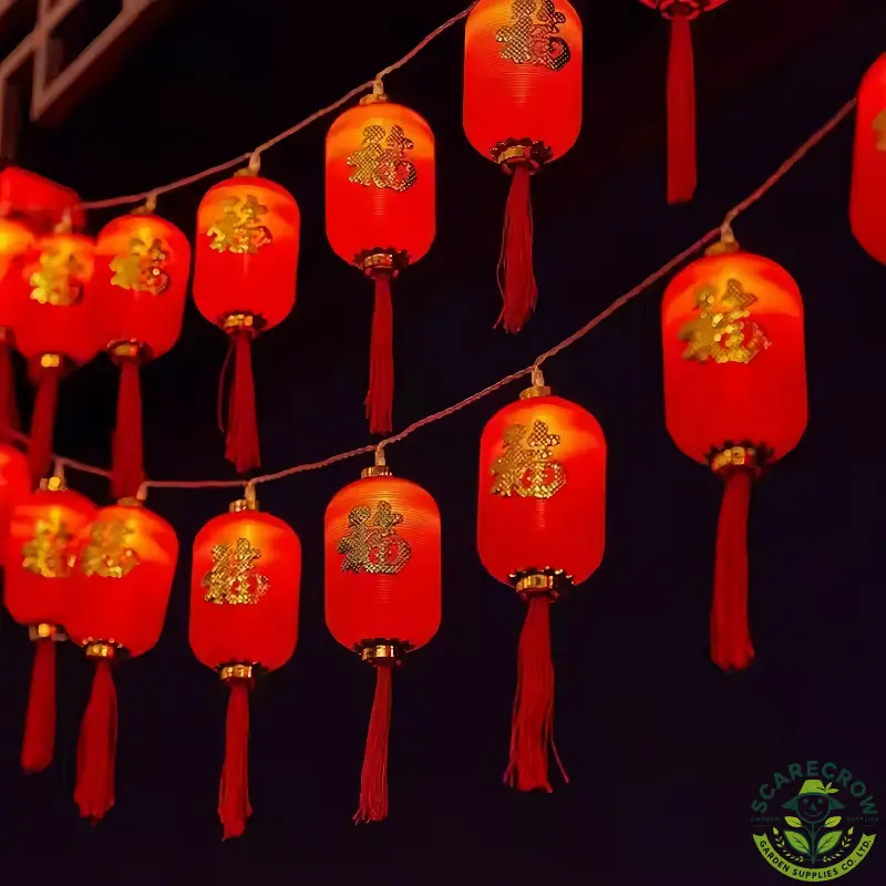 Chinese New Year Red Lantern String Lights with Fu Hanging Decoration