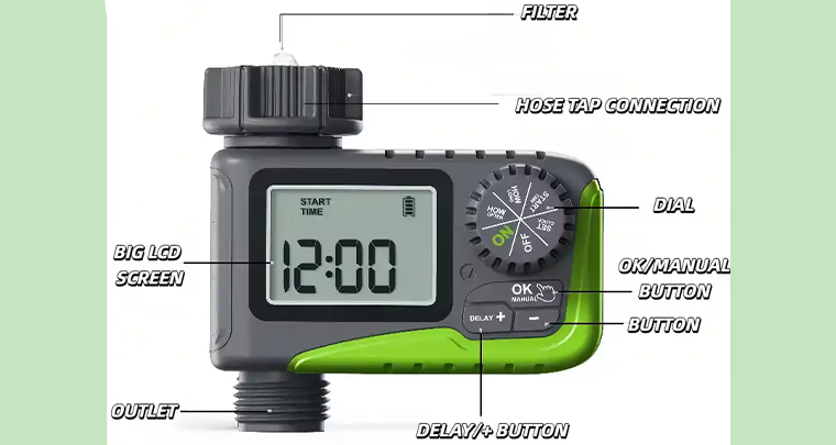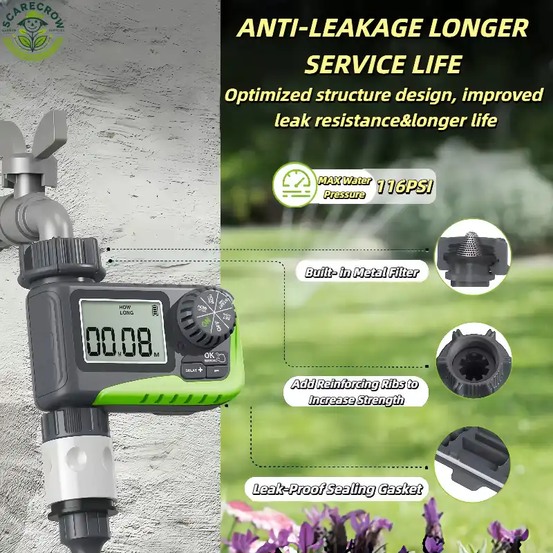 Un minuteur d’irrigation LCD haut de gamme conçu pour une précision, arrosage automatique avec fonction de retard de pluie et durabilité durable.