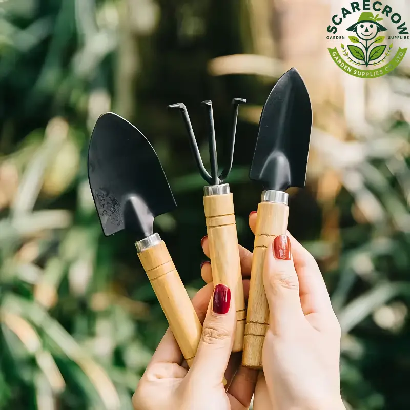 Mini 3-Piece Garden Tool Set – Customizable OEM Iron Shovel, Spade & Rake for DIY Use