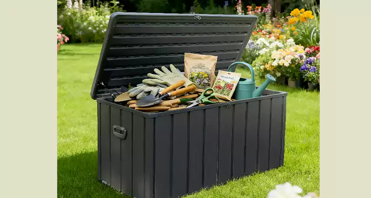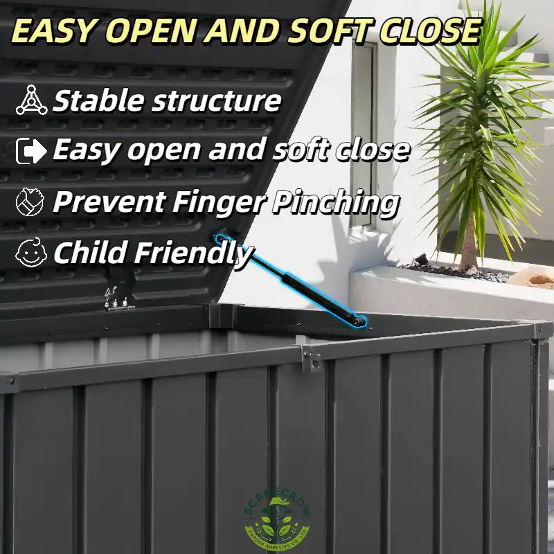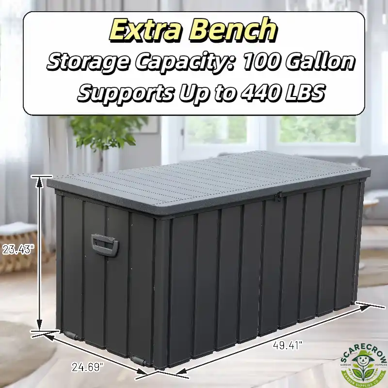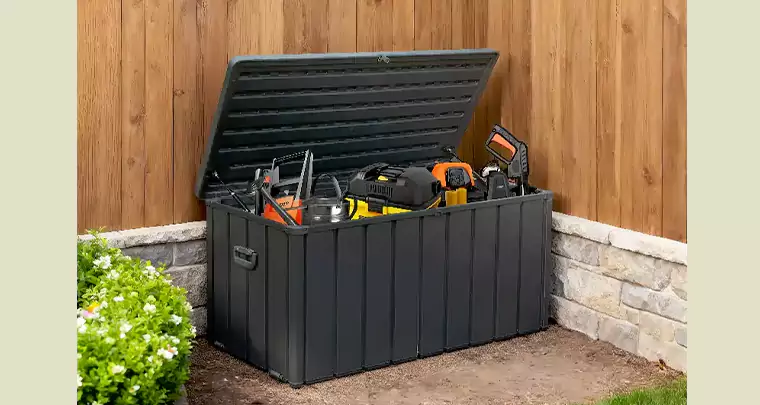 - 100-gallon capacity for storing tools, cushions, or garden supplies.