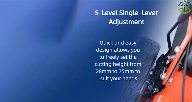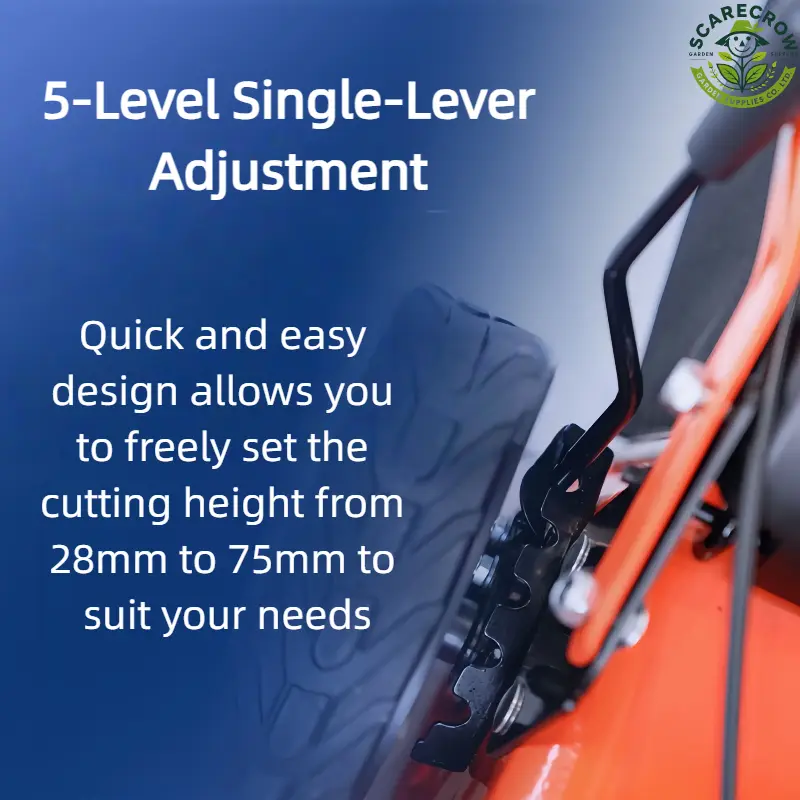 - Adjustable Cutting Height (25–75 mm): One-lever, 5-gear adjustment for different lawn conditions.