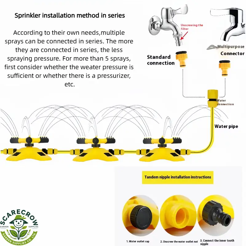 - Series Connection Available: Easily link multiple sprinklers for larger coverage.