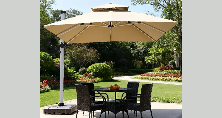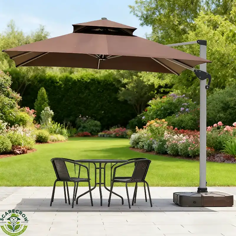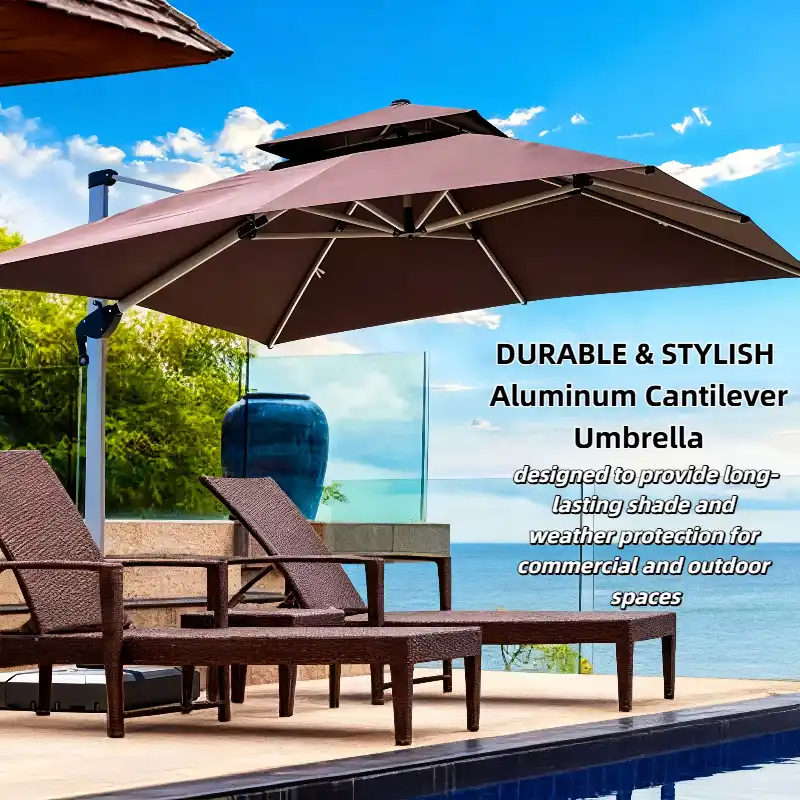 A durable and stylish 3x3m aluminum cantilever umbrella designed to provide long-lasting shade and weather protection for commercial and outdoor spaces.