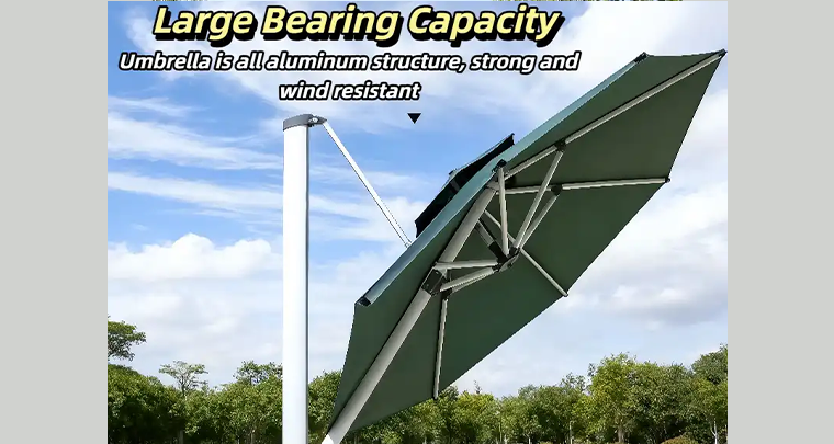 - Strong Aluminum Frame – 100mm x 80mm thick powder-coated aluminum pole and 8 reinforced ribs for superior strength and wind resistance.