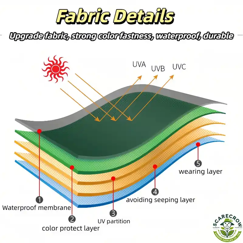 - Premium Polyester Fabric – 280g fade-resistant canopy with up to 98% UV protection, waterproof and durable.