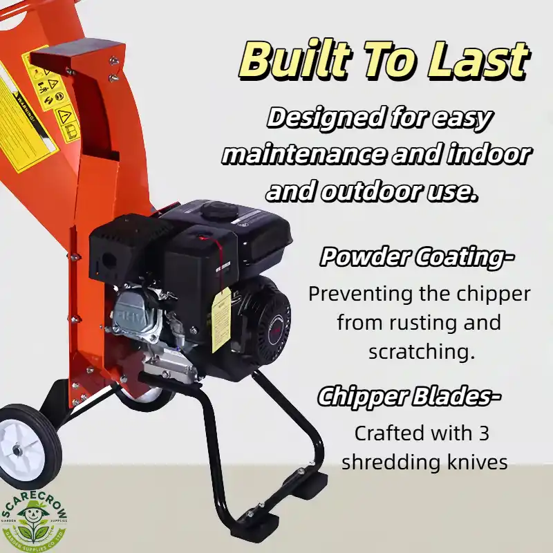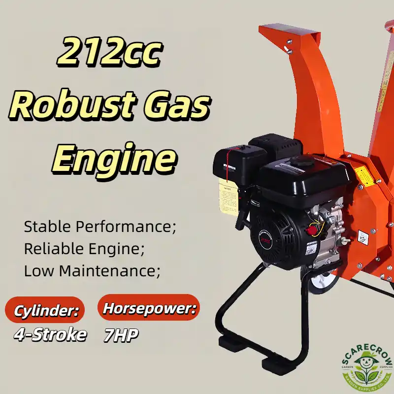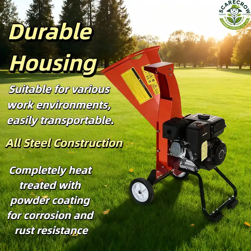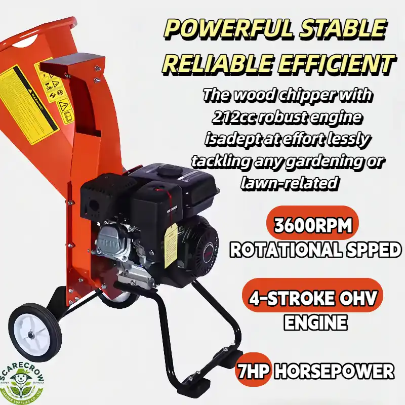 A compact yet powerful 7.5HP gasoline wood chipper designed for efficient garden and farm waste management, delivering durability, reliability, and CE-certified safety.