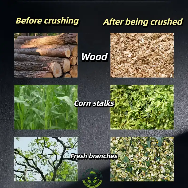 - 50mm chipping capacity: for branches, leaves, corn stalks, bamboo, and more.