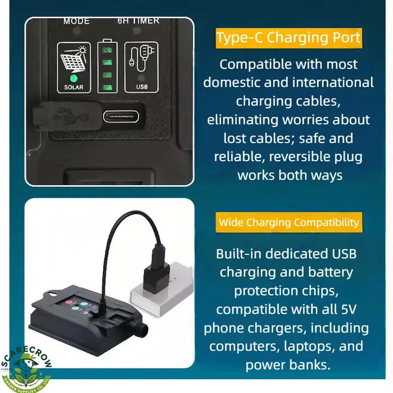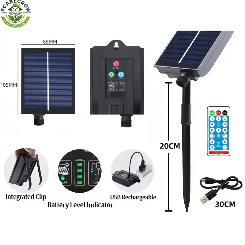 - Easy installation with multiple power options: solar, battery box, or plug-in.