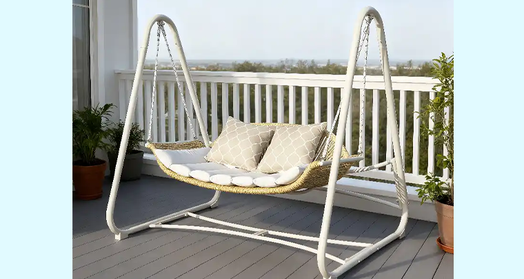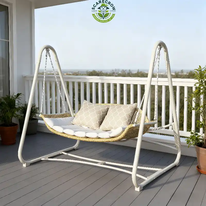 A deluxe 2-seater canopy swing chair combining comfort, durability, and classic style for premium outdoor relaxation.