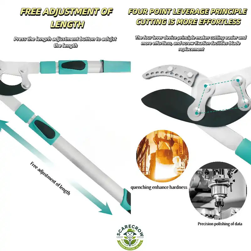 - Telescopic Extension allows easy adjustment to reach higher branches.