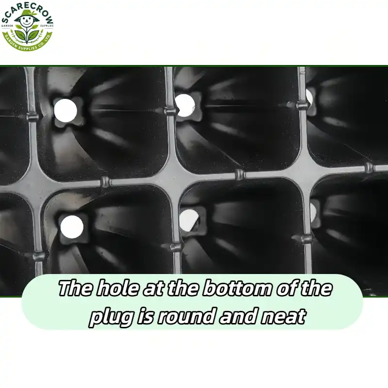 - Orifícios de drenagem redondos uniformes para aeração radicular ideal e controle da água.